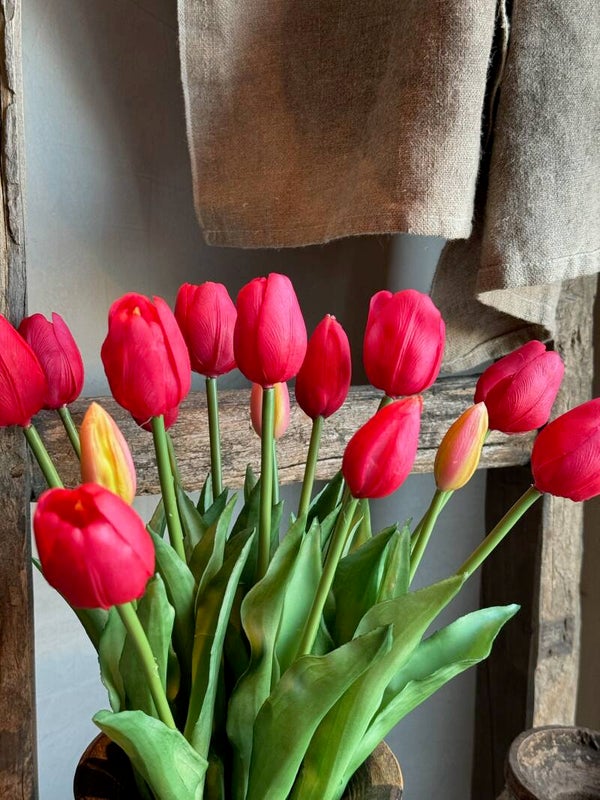 Deze kunst tulpen zijn niet van echt te onderscheiden! Super leuk bosje van 5 stuks, een paar nog mooi in knop, andere al iets open gebloeid, net echt dus!