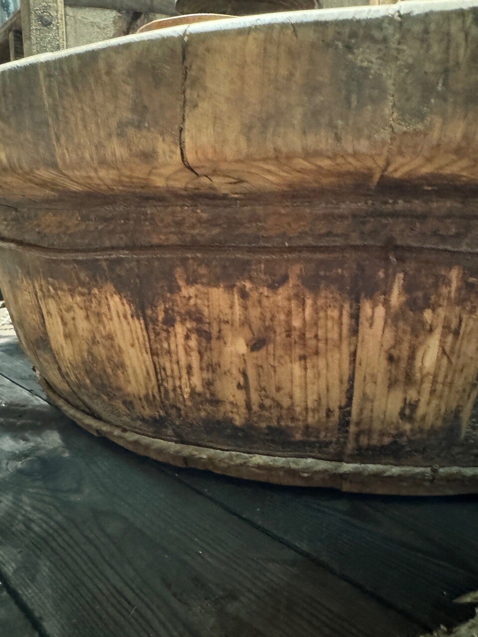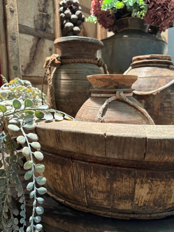Prachtig oude houten olijfbak, super gaaf te decoreren met bijvoorbeeld Nepalese potten of grote glazen windlichten. Onmisbaar in een sober-stoer en landelijk interieur!