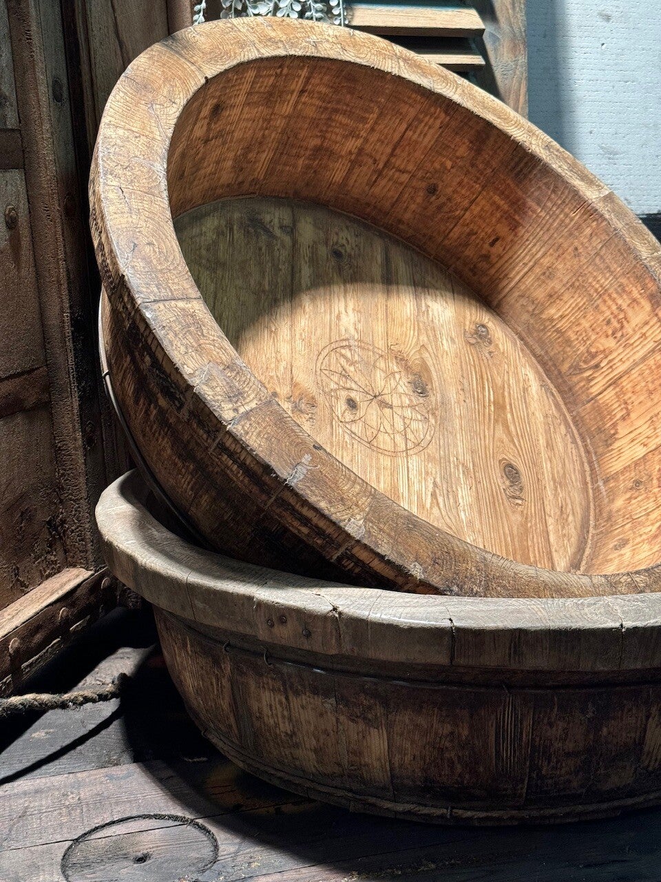 Prachtig oude houten olijfbak, super gaaf te decoreren met bijvoorbeeld Nepalese potten of grote glazen windlichten. Onmisbaar in een sober-stoer en landelijk interieur!