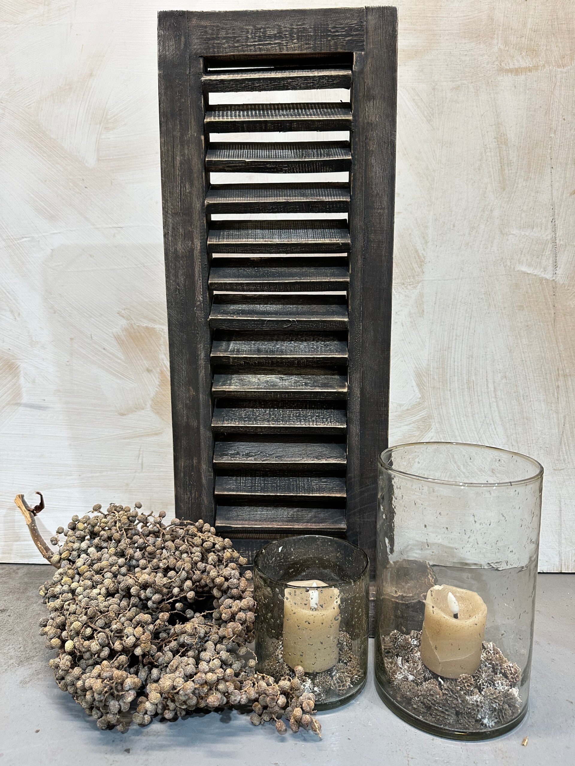 Deze tijdloze louvre luiken zijn leuk voor elk interieur. Zet ze in uw raam of op dressoir, hang er bijvoorbeeld een mooie shabby aan of hanglepel met een kaarsje!