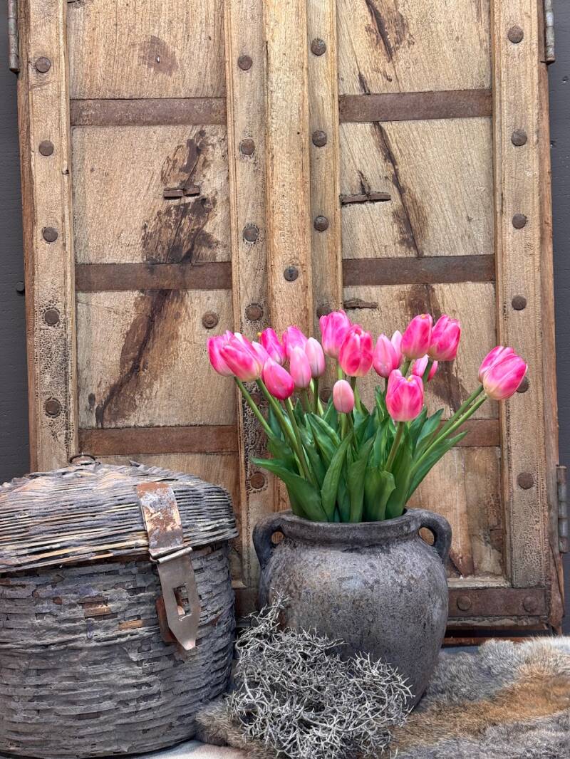 Erg mooi in een houten kruik, glazen cilinder of zoals op de foto in een glazen bubbel vaas. Maar deze tulpen kan je ook leuk neerleggen 😉 💐