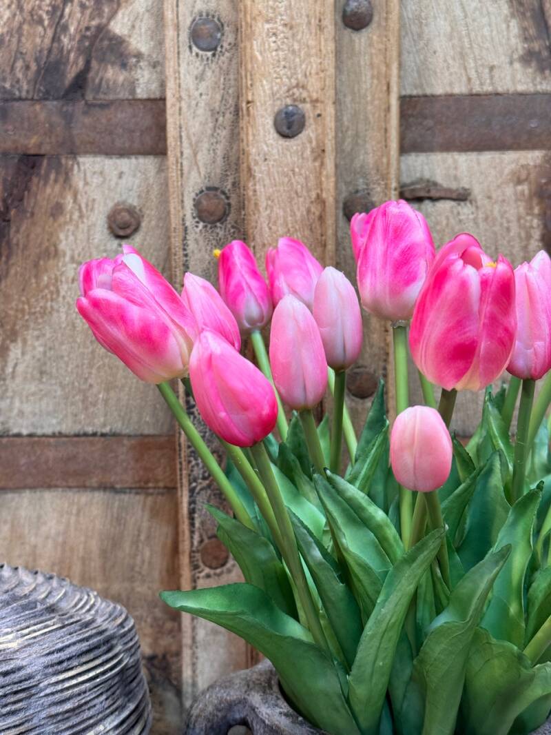 Kunst tulpen real touch duo colour 5 stuks - tulp roze/wit 41cm