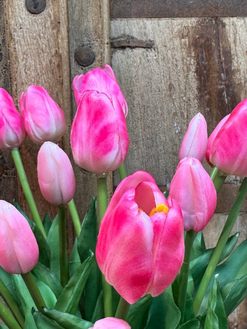 Deze kunst tulpen zijn niet van echt te onderscheiden! Super leuk bosje van 5 stuks, een paar nog mooi in knop, andere al iets open gebloeid, net echt dus!