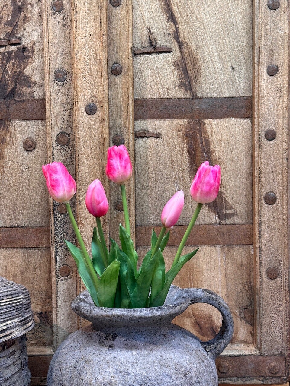 Maat: 41cm en 5 tulpen in een bosje (op de foto is de vaas gevuld met 4 bosjes)