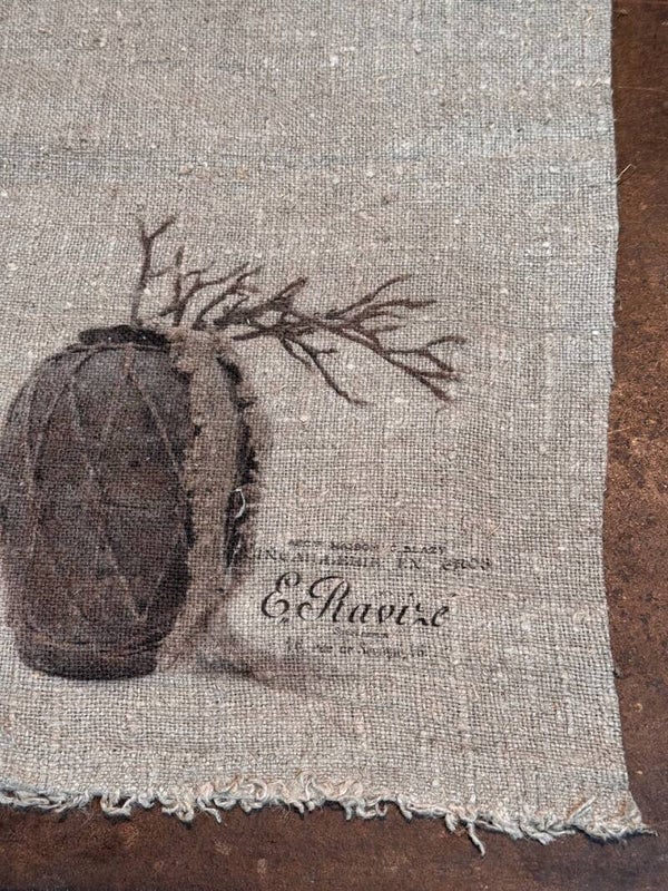 Shabby sierdoek gemaakt van 100% grof shabby naturel kleurig linnen, duidelijk bedrukt met logo/tekst. Niet afgezoomd. Wasbaar op 30 graden in een waszakje (kan krimpen na wassen)