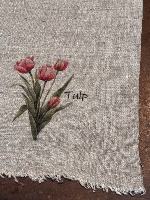Shabby sierdoek gemaakt van 100% grof shabby naturel kleurig linnen, duidelijk bedrukt met logo/tekst. Niet afgezoomd. Wasbaar op 30 graden in een waszakje (kan krimpen na wassen)