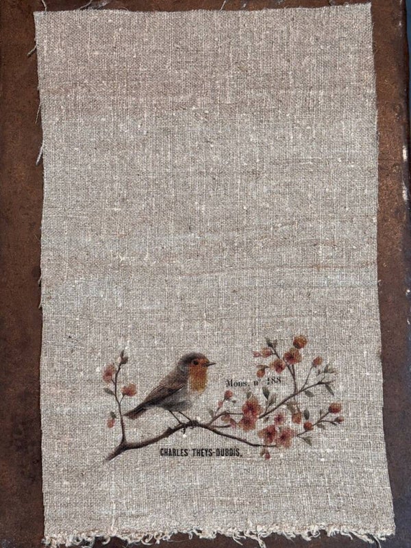 Shabby sierdoek gemaakt van 100% grof shabby naturel kleurig linnen, duidelijk bedrukt met logo/tekst. Niet afgezoomd. Wasbaar op 30 graden in een waszakje (kan krimpen na wassen)