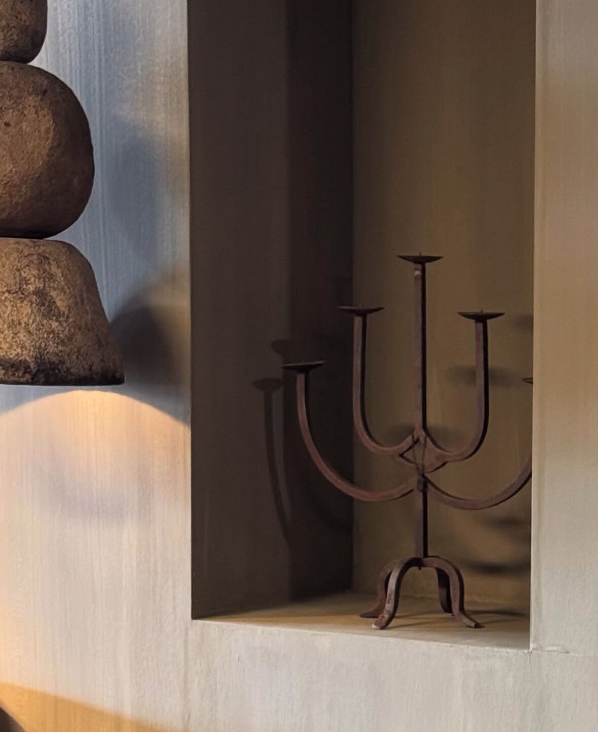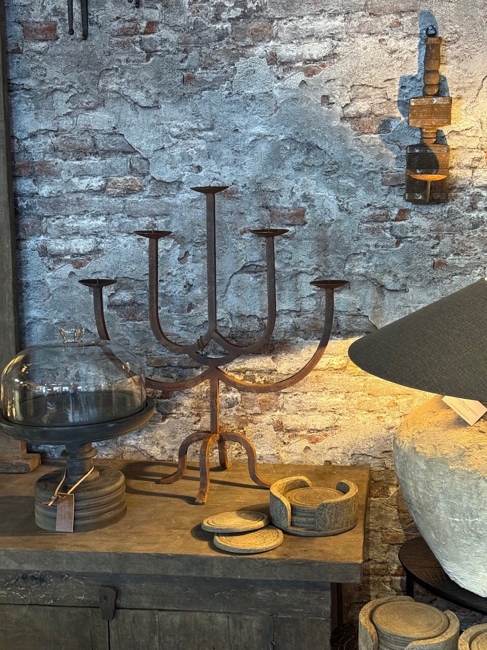 Een echte eye-catcher is deze kandelaar zeker weten, met zijn 5 armen een prachtig stuk van Aura Peeperkorn. Gemaakt van stevig ijzer met een mooie roest afwerking