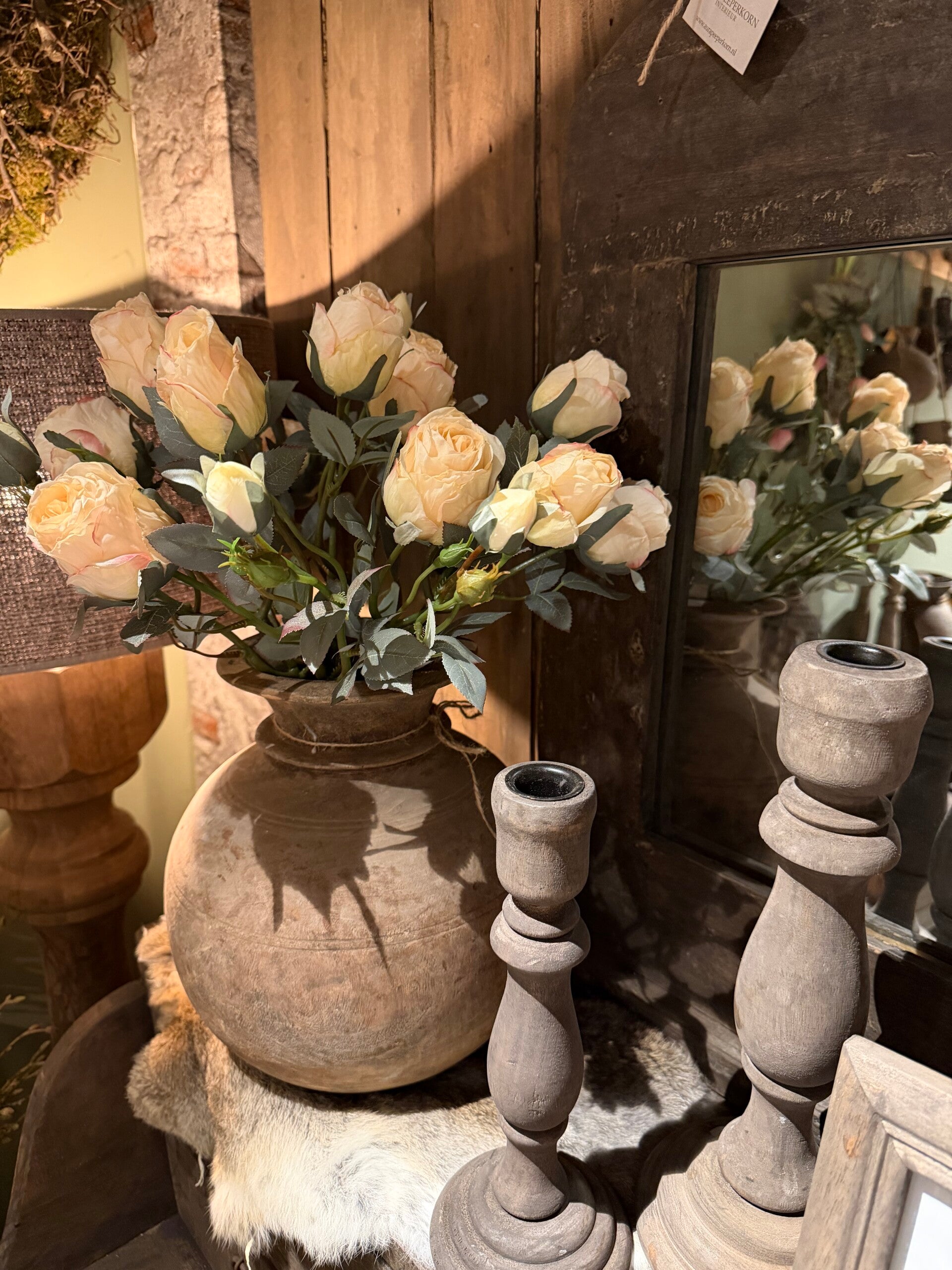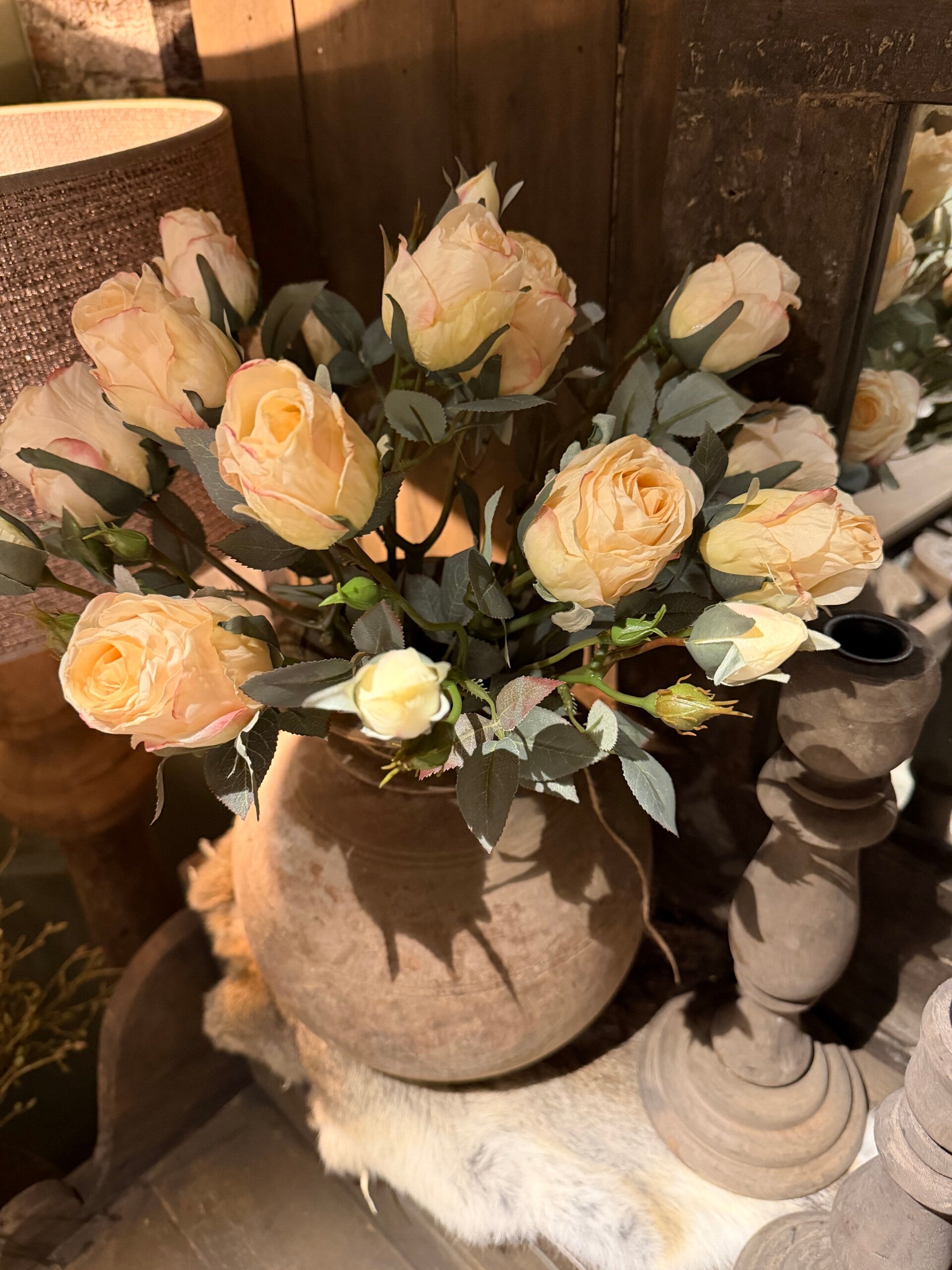 Deze prachtige kunst rozen zijn perfect voor kleinere vazen of als speels accent op tafel of vensterbank. De variatie in bloemvormen zorgt voor een natuurlijke, uitgebalanceerde uitstraling. Een kant-en-klare oplossing voor elk interieur, passend in klassieke, landelijke en moderne stijlen. Ideaal om solo te plaatsen of te verwerken in grotere bloemstukken.
