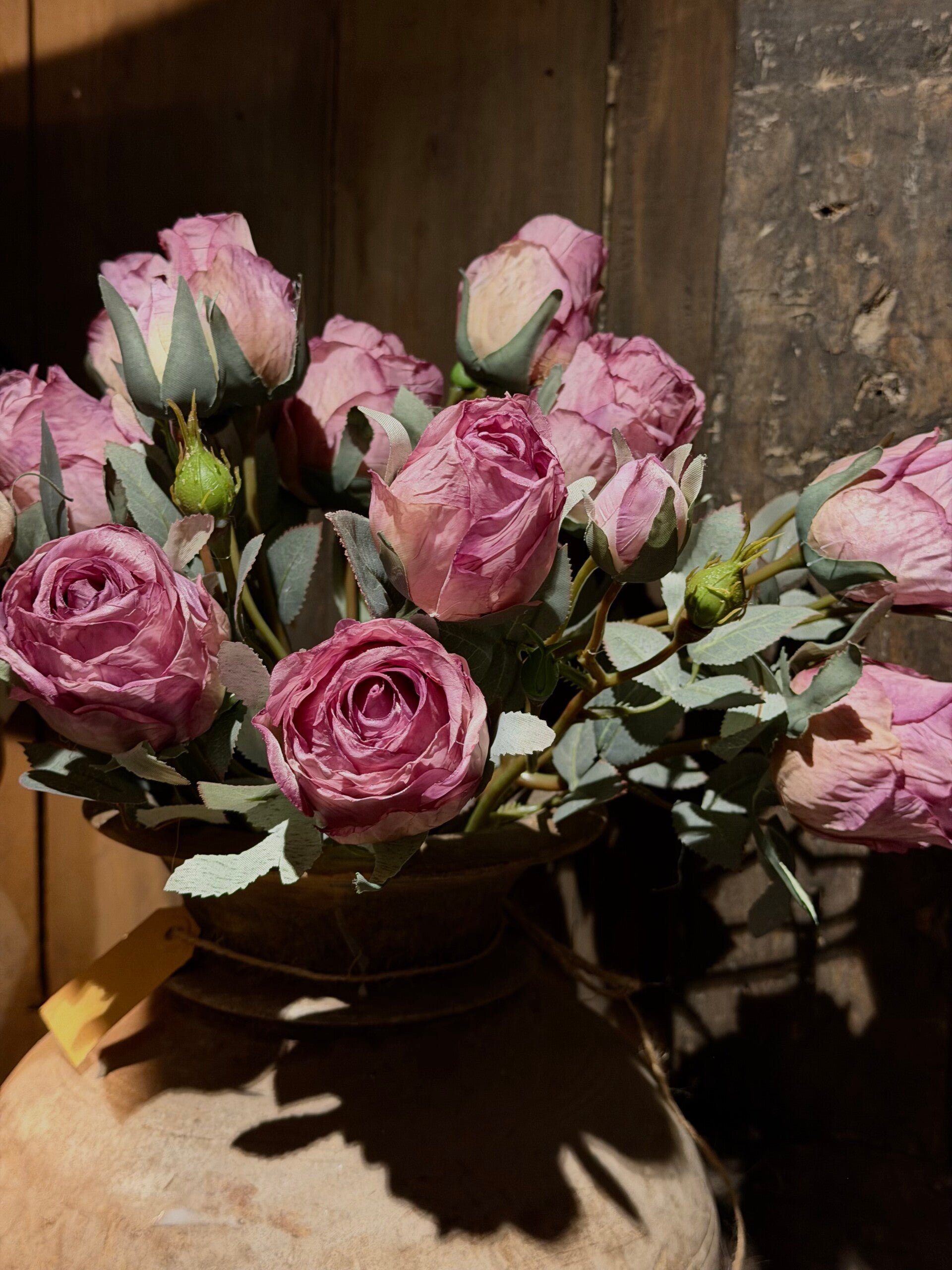 Deze prachtige kunst rozen zijn perfect voor kleinere vazen of als speels accent op tafel of vensterbank. De variatie in bloemvormen zorgt voor een natuurlijke, uitgebalanceerde uitstraling. Een kant-en-klare oplossing voor elk interieur, passend in klassieke, landelijke en moderne stijlen. Ideaal om solo te plaatsen of te verwerken in grotere bloemstukken.