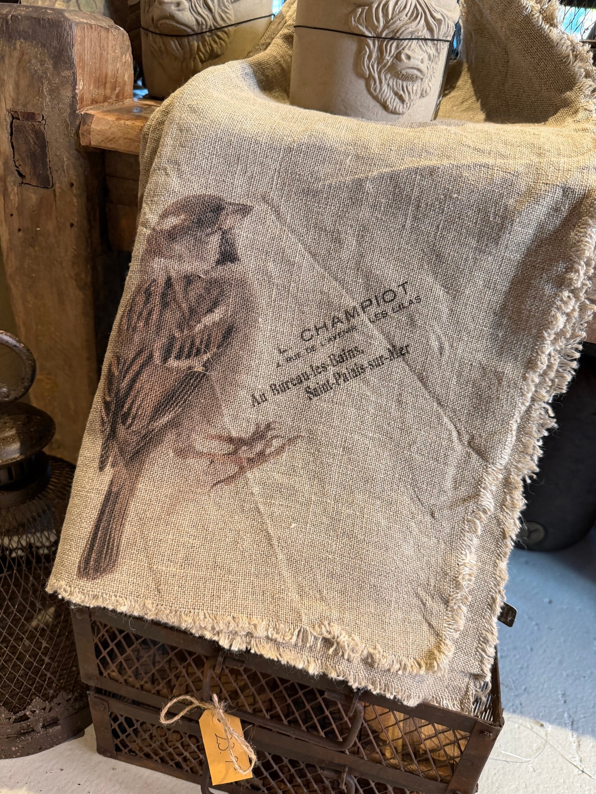 New shabby sierdoek 45×45 cm, alle zijdes voorzien van rafels, bedrukt op de punt van de doek